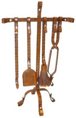 HERRAMIENTAS: las herramientas en fierro forjado son productos fabricados con el fin de atizar menos, limpiar las chimeneas, entre estos resaltan; pala, pincho, y escoba, son trabajados en caliente a base de fuego y golpe de martillo, fabricamos según el diseño requerido y casi siempre utilizamos como decoración remaches, flores, hojas, retorcidos. Nuestros productos son únicos, bellos y a su alcance.
